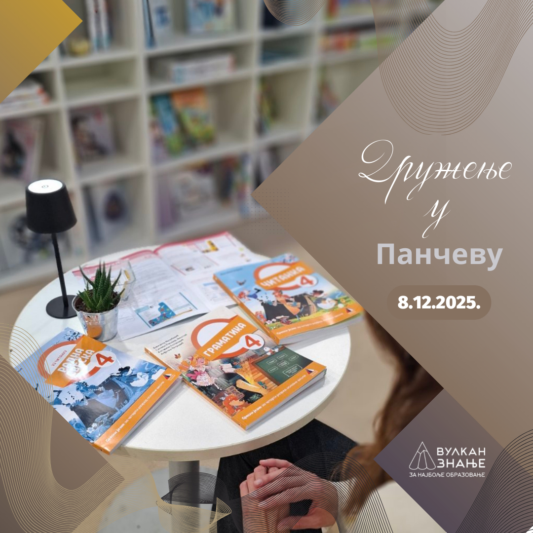 У пријатном амбијенту, уз освежавајуће напитке и послужење, представићемо уџбенике Вулкан знања за 4. и 8. разред за предмете српски језик и књижевност, математика, историја, биологија, географија, енглески језик, физика, хемија, ликовна и музичка култура, информатика и рачунарство и техника и технологија.