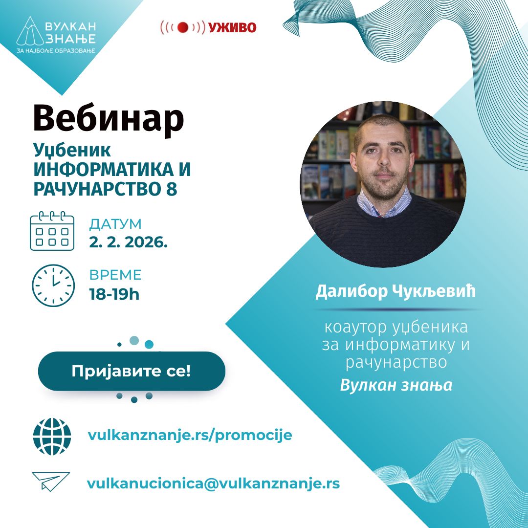 Уџбеници Информатике и рачунарства Вулкан знања савремени су и иновативни, развијају истраживачки дух, самостално размишљање и логичко закључивање код ученика.