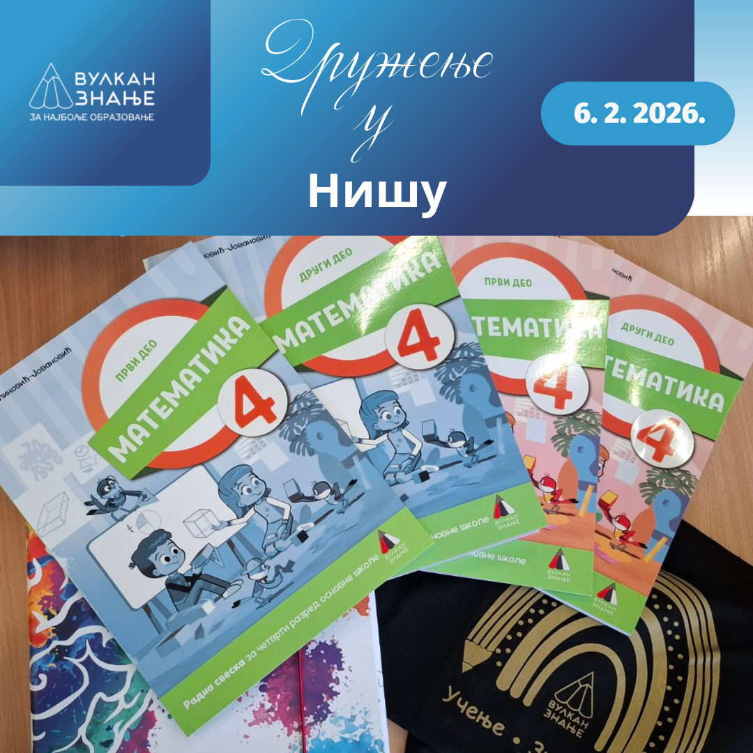 У пријатном амбијенту, уз освежавајуће напитке и послужење, представићемо уџбенике Вулкан знања за 4. и 8. разред за предметесрпски језик и књижевност, математика, историја, биологија, географија, енглески језик, физика, хемија, ликовна и музичка култура, информатика и рачунарство и техника и технологија.