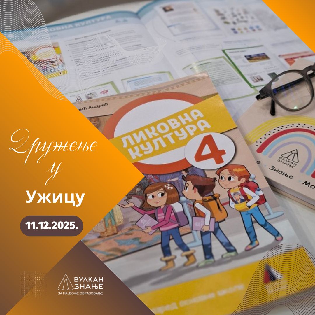 У пријатном амбијенту, уз освежавајуће напитке и послужење, представићемо уџбенике Вулкан знања за 4. и 8. разред за предмете српски језик и књижевност, математика, историја, биологија, географија, енглески језик, физика, хемија, ликовна и музичка култура, информатика и рачунарство и техника и технологија.